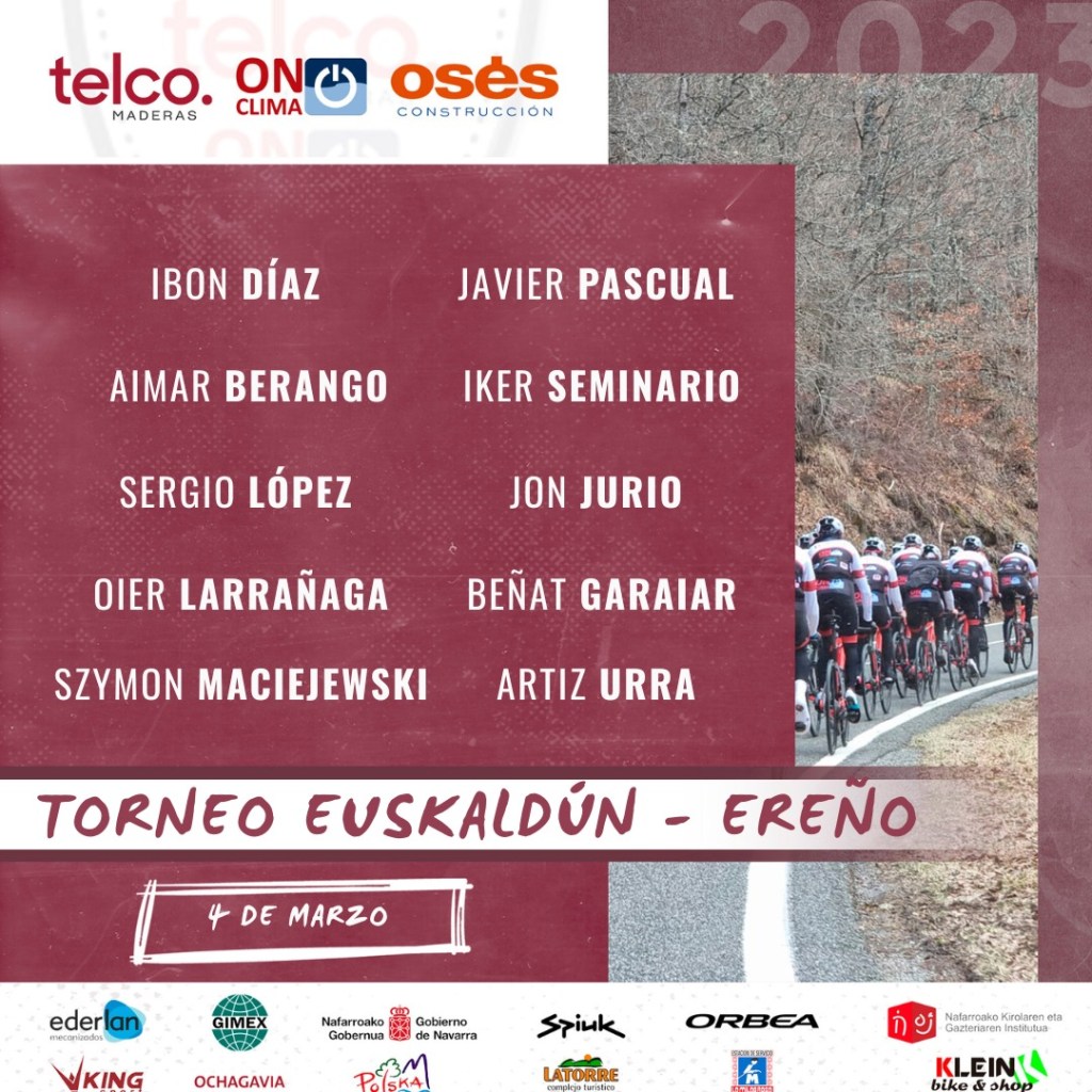 El Telco. ON Clima Osés contará con Ibon Díaz, en busca de mejorar su buen resultado en Zumaia; Aimar Berango, Iker Seminario, Sergio López, Jon Jurio y Oier Larrañaga, atentos para aprovechar cualquier circunstancia de carrera; los junior Beñat Garaiar y Javier Pascual; el campeón polaco junior Szymon Maciejewski; el veloz Aritz Urra, que tratará de resarcirse tras la montonera en la que se vió involucrado en Zumaia y el siempre combativo Jon Ibarluzea.