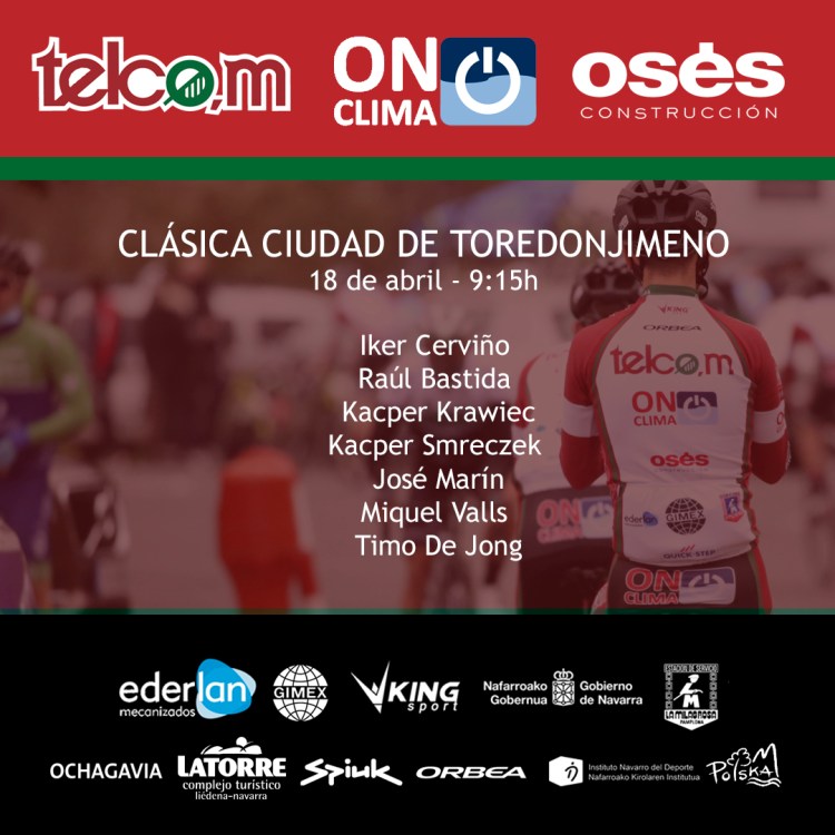 La práctica totalidad del equipo competirá en unas fechas que concentran la competición. Con las buenas actuaciones en la Copa de España de Miki Valls (en Aiztondo) y José Marín (en Valenciaga), la durísima carrera de Torredonjimeno es una nueva oportunidad de lucirse. Presentará un trazado muy similar al de años anteriores, con los ascensos al Alto de Locubín, de primera categoría (9 km al 3,9 %), y al Alto de Valdepeñas, de segunda categoría (3,5 km al 3,6%), como puntos claves.